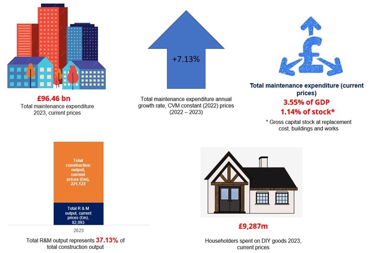 Total maintenance expenditure in 2023 (at current prices) is estimated to be £96.46bn, the latest Economic Significance of Maintenance report estimates. At constant prices, this represents a 7.1% increase on 2022.