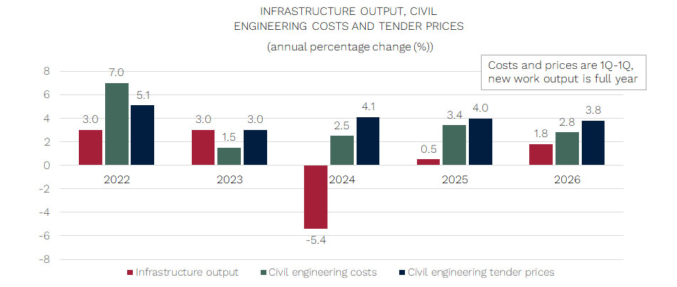 Civil engineering demand is not expected to grow significantly over the period, but it will remain at historically high levels.