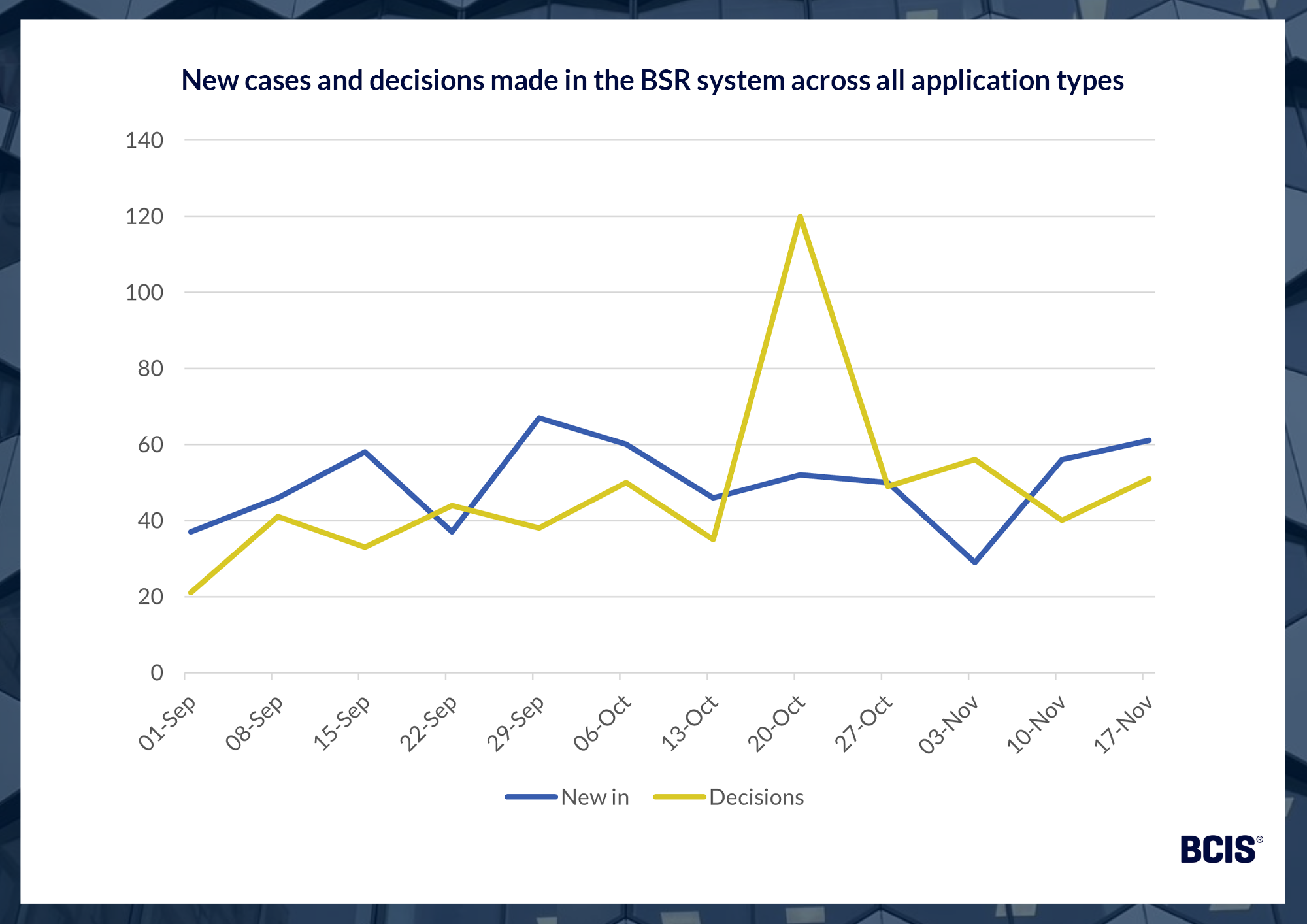 The latest data show that as of 24 November, there were 1,133 live cases across all application types in the BSR’s system.