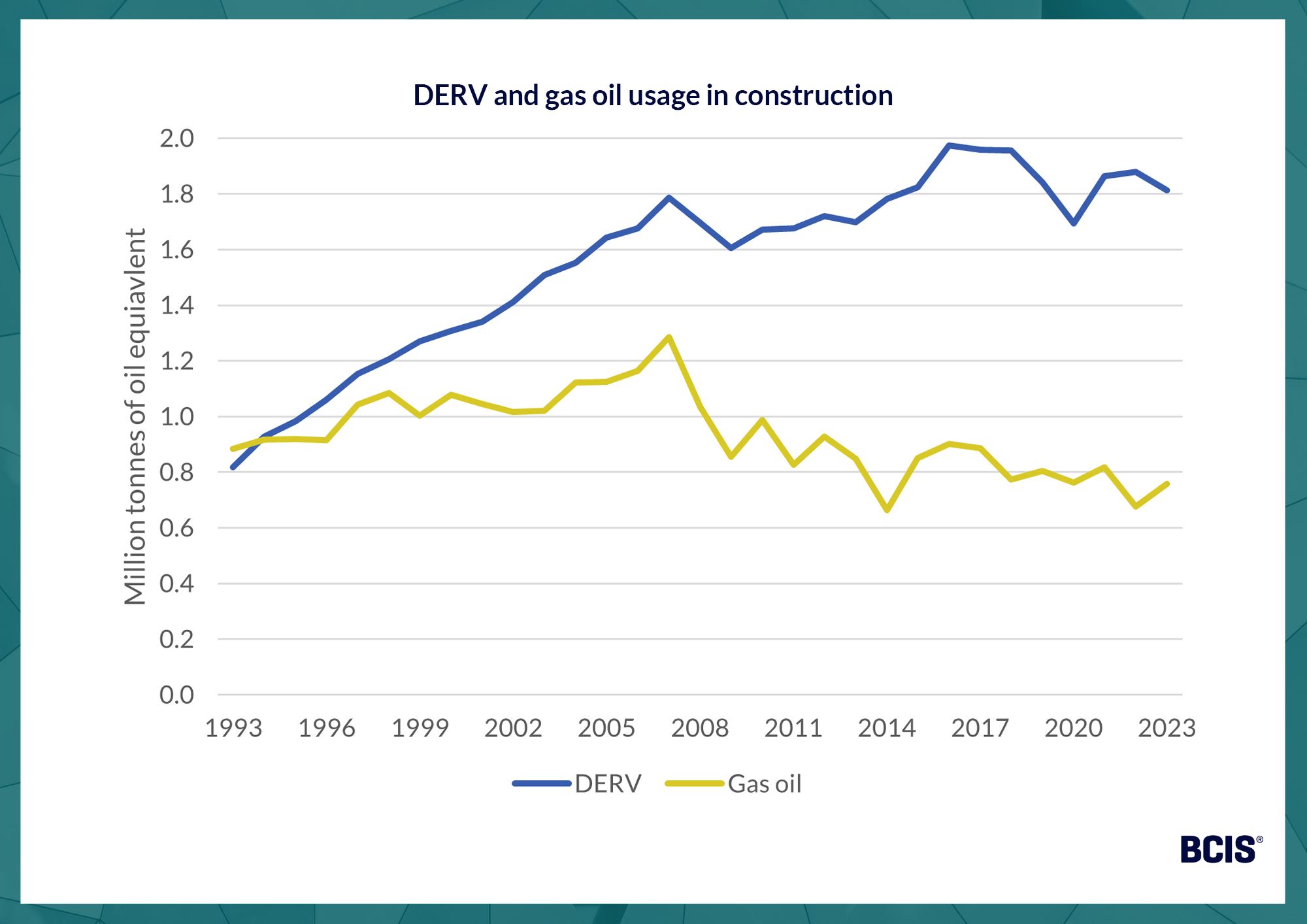 Between 1993 and 2023, DERV usage in construction more than doubled, rising by 121.8%. In contrast, gas oil usage fell by 14.3% in the same period.