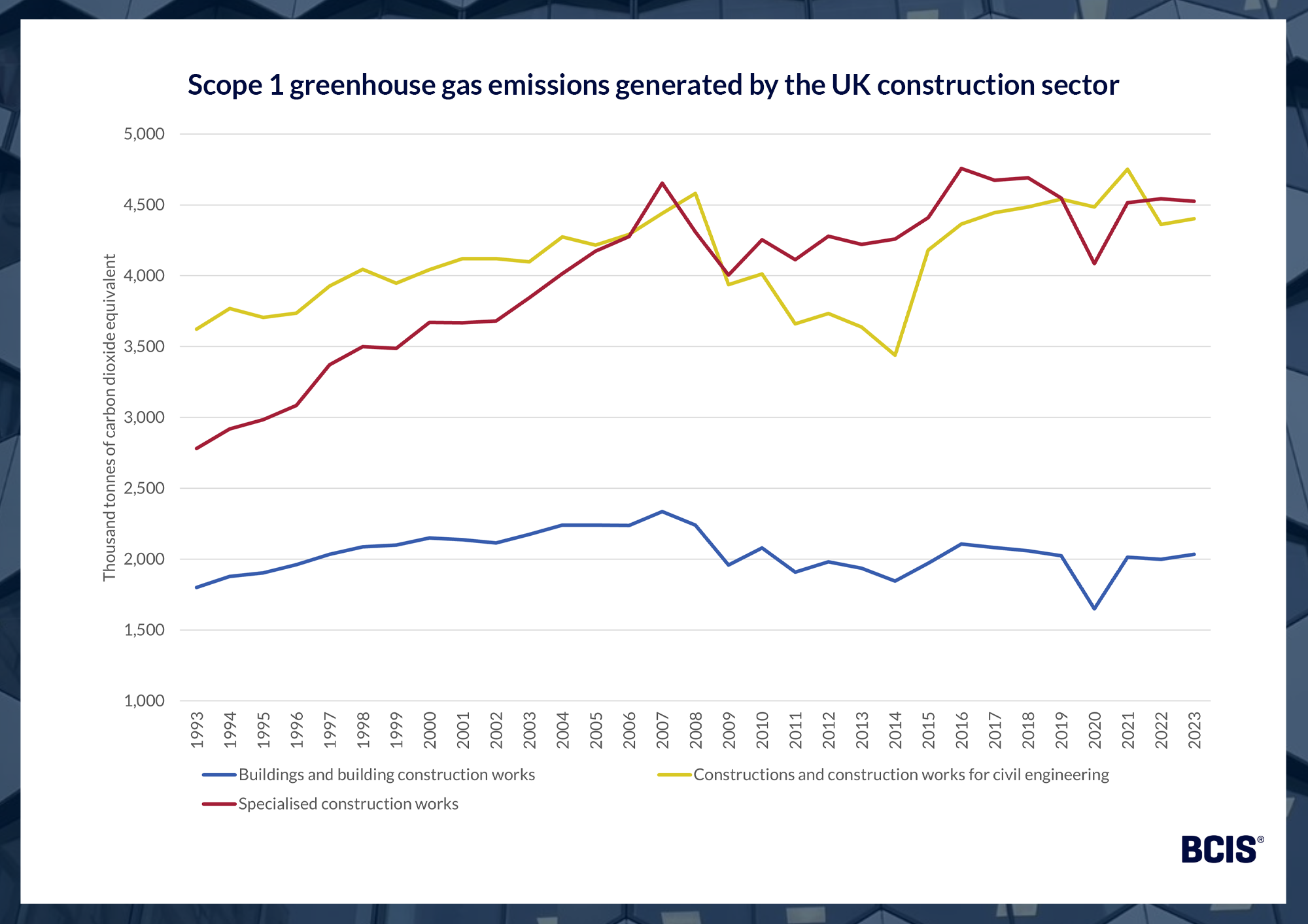 Greenhouse gas (GHG) emissions produced by the UK construction sector in 2024 were 30.3% higher than in 1994, new provisional data from the ONS has shown.