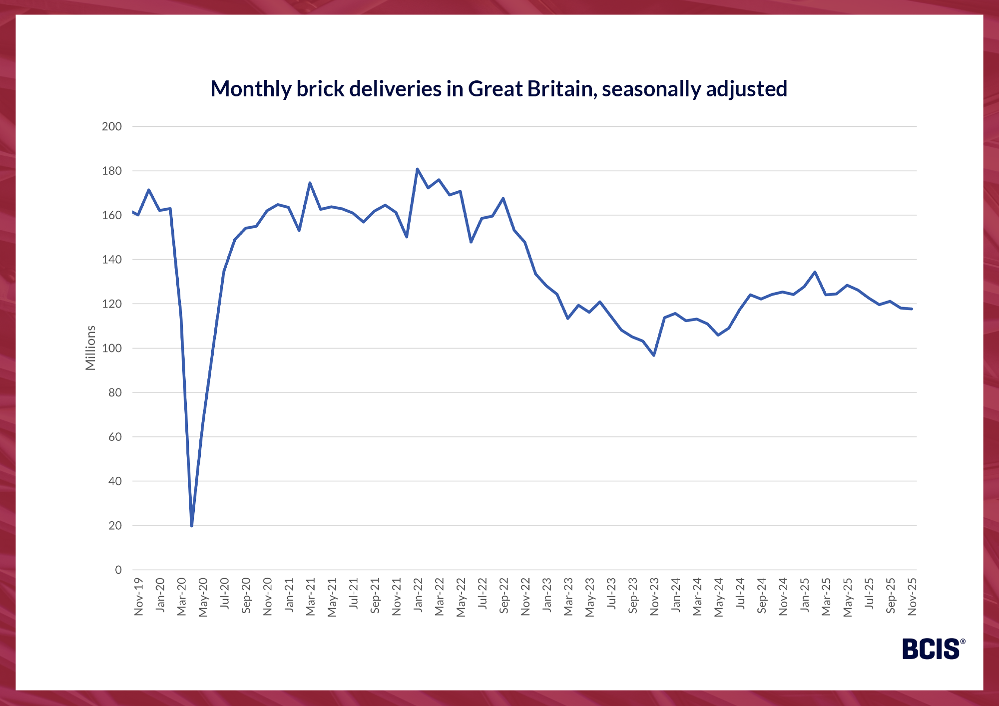 Dr David Crosthwaite, chief economist at BCIS, said: ‘The newly resumed construction materials price indices show modest growth throughout 2025 after a period of sustained downward movement.