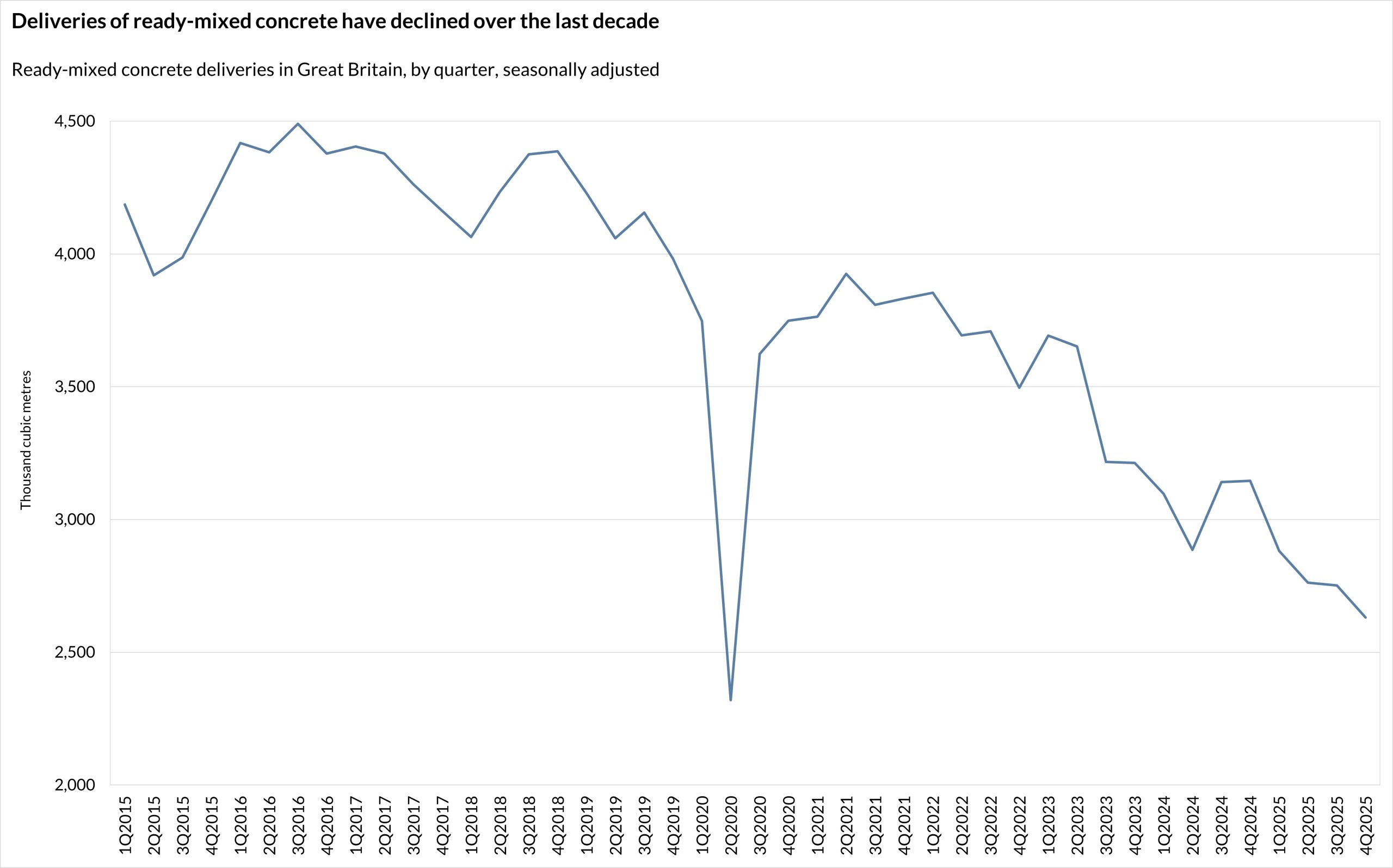 Economic data from the Mineral Productions Association (MPA) (3) indicate that demand for core construction materials is weak, with demand for key materials including concrete, aggregates and asphalt declining for the fourth consecutive year in 2025.