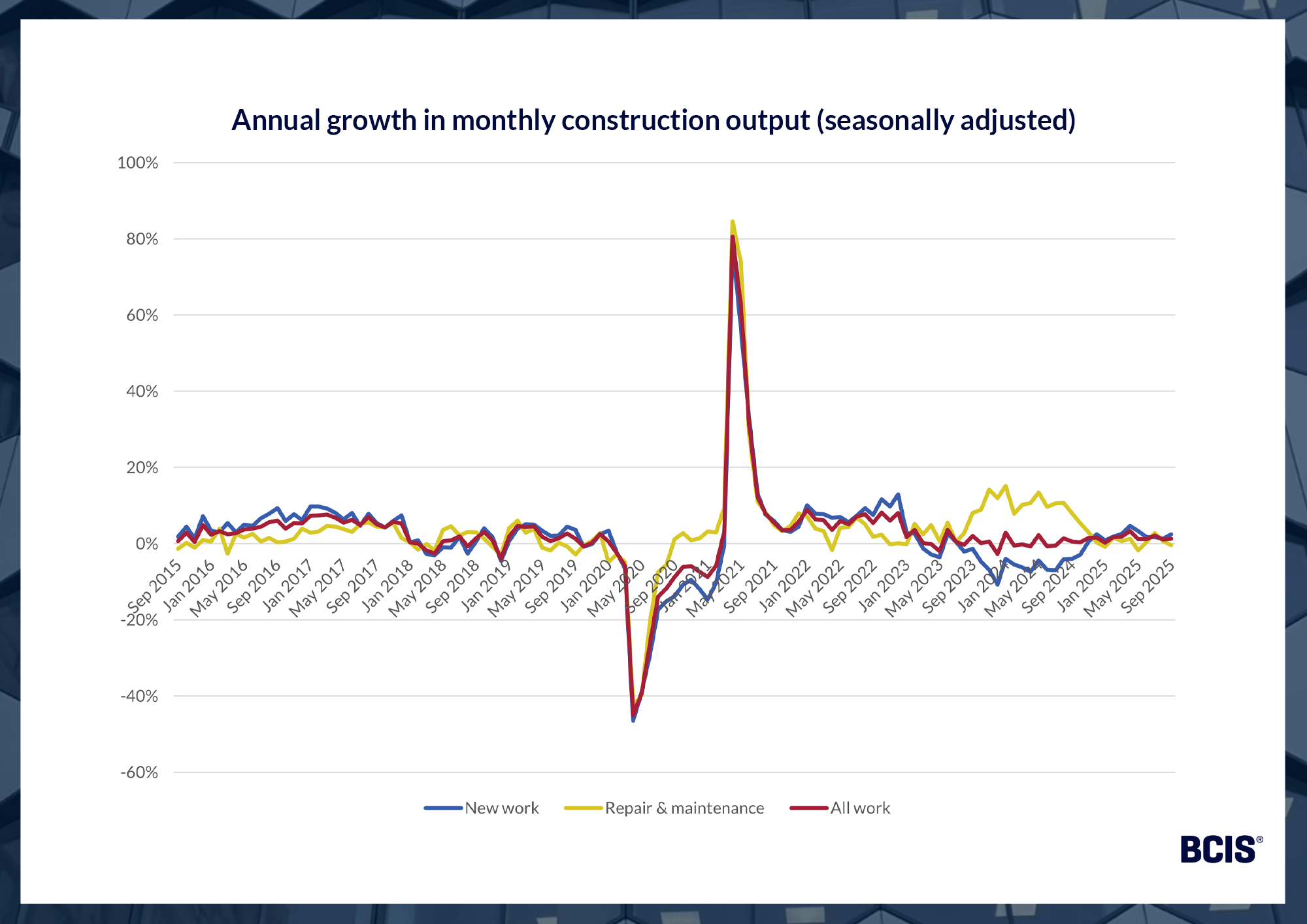 Construction’s 0.1% growth contributed to overall GDP also growing by just 0.1% in 3Q2025 – services increased by 0.2%, while production fell by 0.5%.